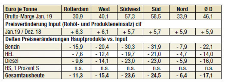 Raffineriemargen im Januar stark unter Druck