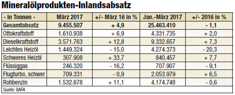 Mineralölprodukten-Inlandsabsatz (März 2017)