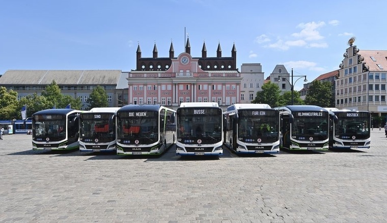 Mit insgesamt 15 neuen Bussen will die Rostocker Straßenbahn AG (RSAG) die öffentliche Mobilität in der Hansestadt klimafreundlicher aufstellen. Zehn der Fahrzeuge werden mit Biomethan betrieben, weitere fünf sind rein elektrisch unterwegs.