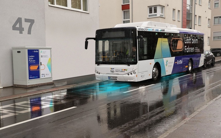 Auf der aktuell laufenden Gartenschau im baden-württembergischen Balingen wird ein elektrischer Shuttle-Bus eingesetzt, der während der Fahrt kontaktlos lädt. Es sei das erste Mal, dass die Technologie auf öffentlichen Straßen in Deutschland getestet werde.