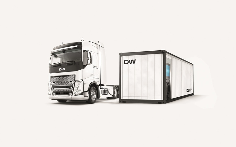 Mit einer eigens so betitelten „Mega-Ladestation” will das Elektromobilitätsunternehmen Designwerk Technologies das Schnellladen von Elektro-LKW innerhalb von 45 Minuten ermöglichen.